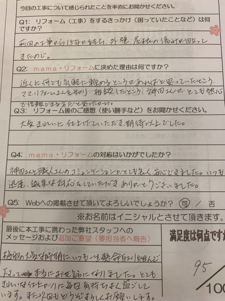 mamaリフォームの対応はいかがでしたか?