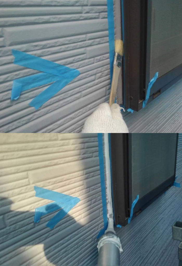 サッシ廻りコーキング打ち増し:プライマー塗布→コーキング打ち