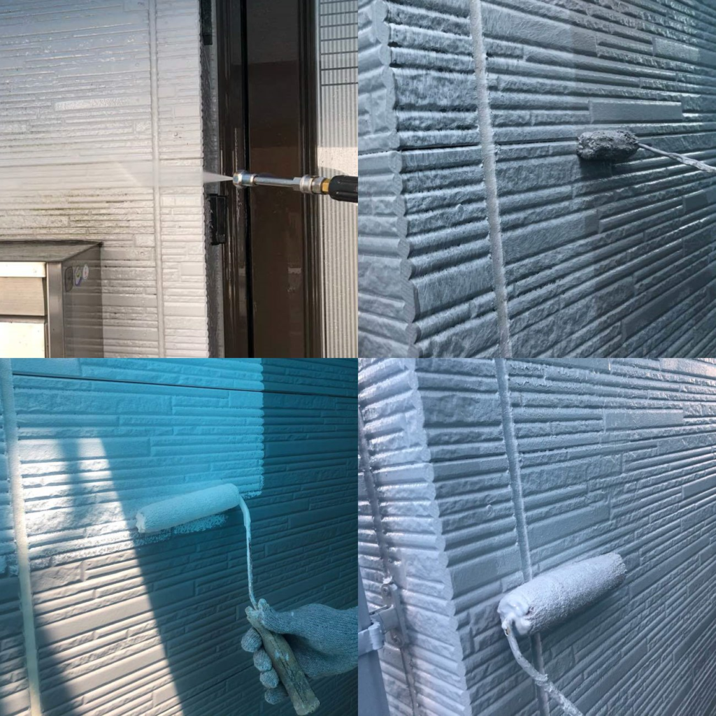 外壁サイディング部塗装:高圧洗浄→下塗り塗布→中塗り塗布→上塗り塗布→施工完了