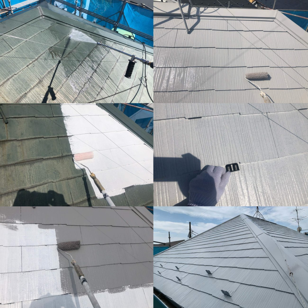 屋根塗装:高圧洗浄→下塗り塗布→中塗り塗布→上塗り塗布→施工完了