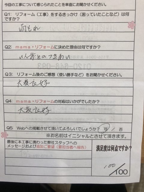 • mamaリフォームの対応はいかがでしたか?