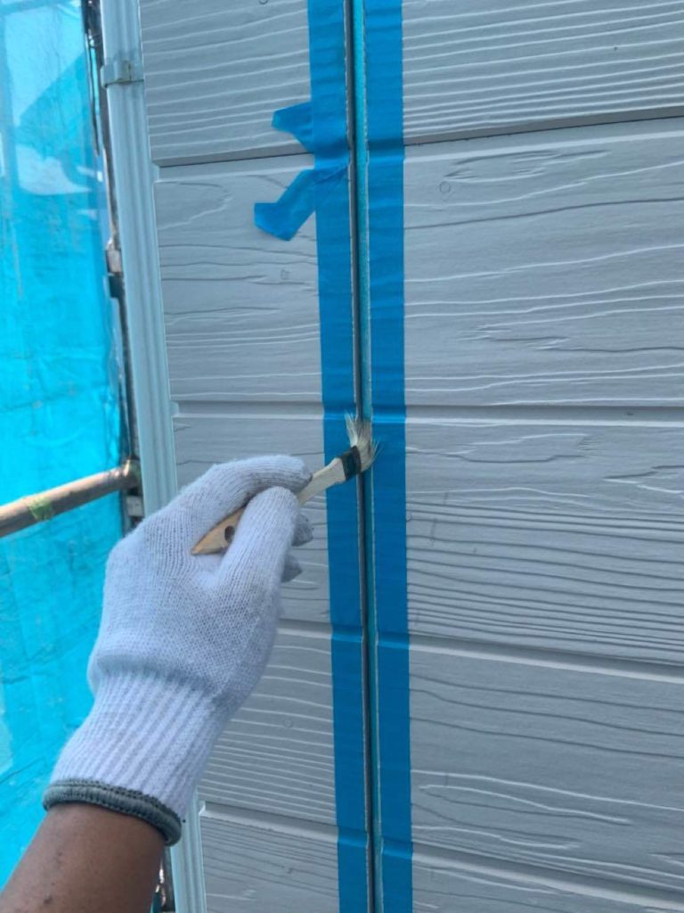 【外壁SD目地コーキング】養生・プライマー塗布