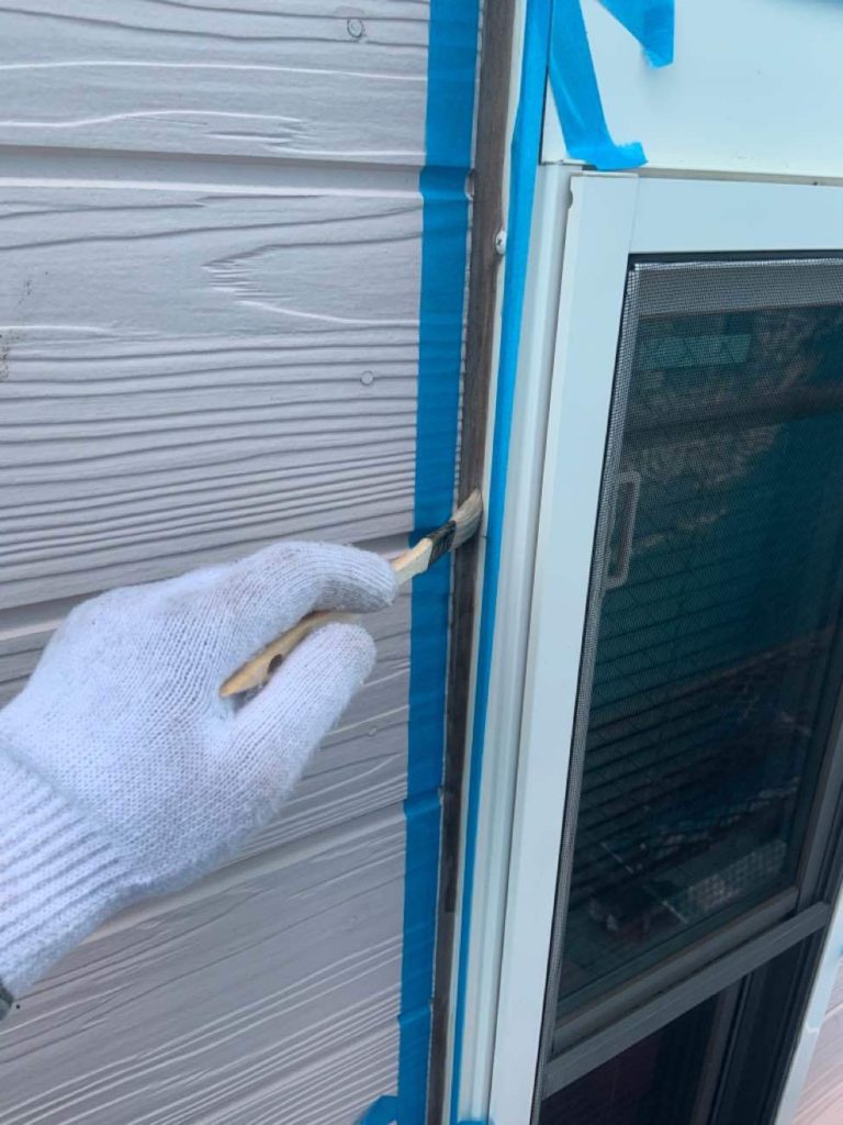 【サッシ廻りコーキング】養生・プライマー塗布