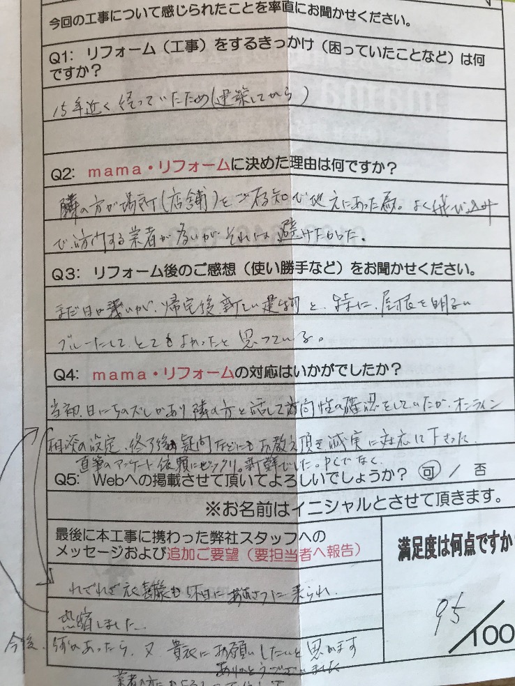 今後何かあったら、また貴社にお願いしたいとおもいます。ありがとうございました。業者の方によろしくお伝えください。