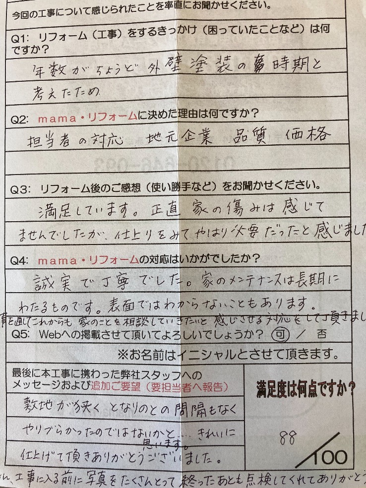 • mamaリフォームの対応はいかがでしたか?