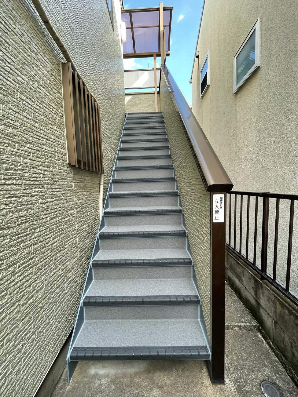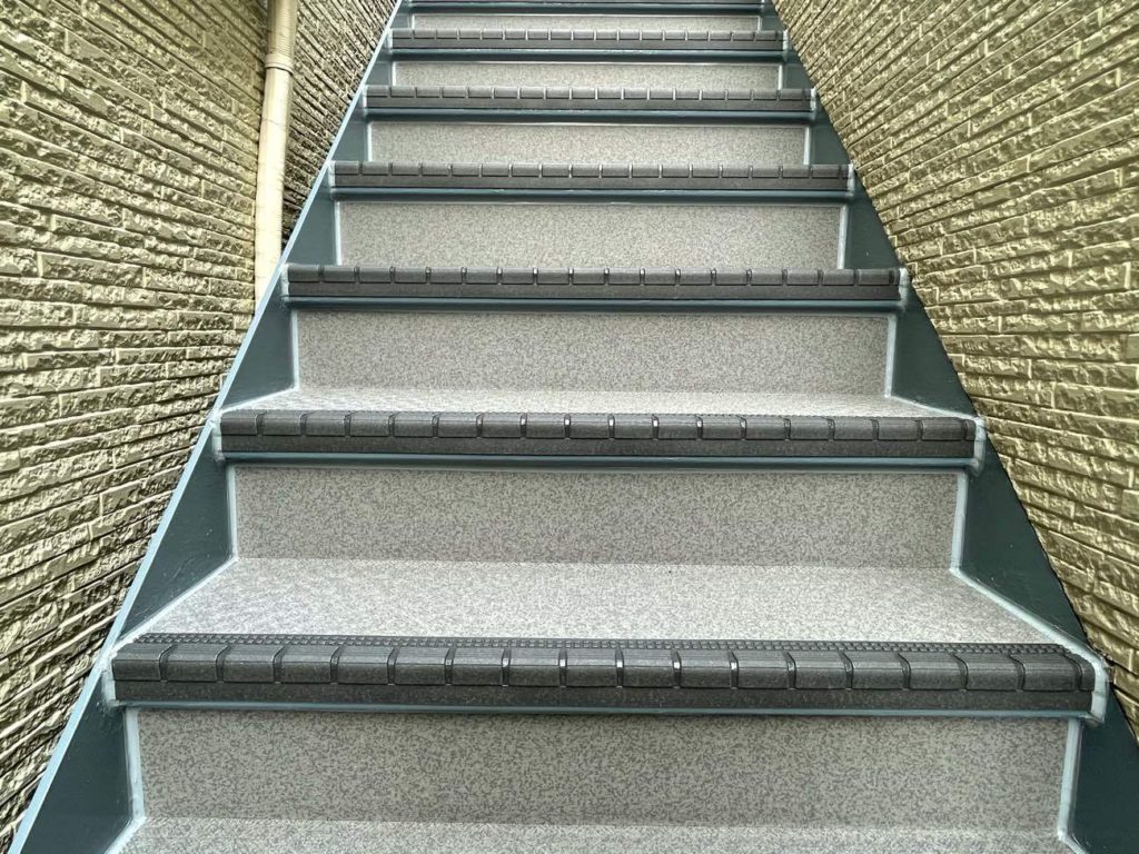 雨水が鉄骨にまわり錆びているのをご心配されていたので、防水性の高さかつ、上がり降りの際に滑りにくいものを