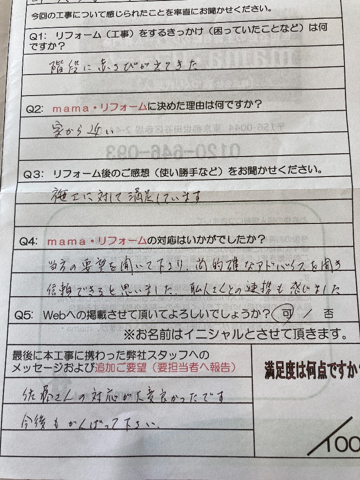 • mamaリフォームの対応はいかがでしたか?