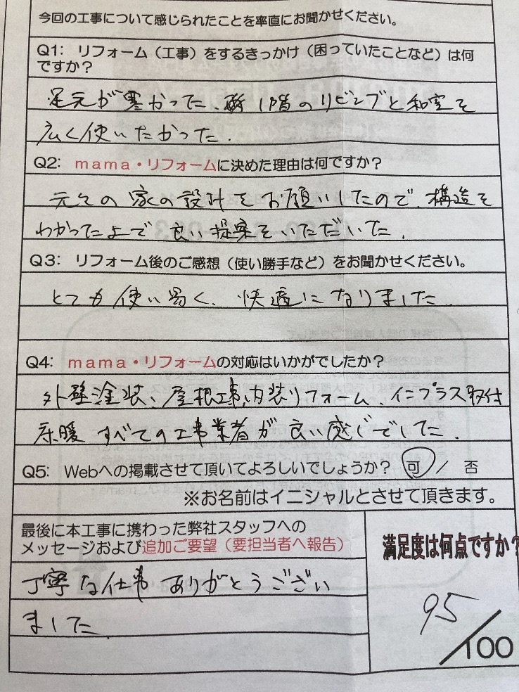 外壁塗装、屋根工事、内装リフォーム、インプラス取付、床暖すべての工事業者が良い感じでした。