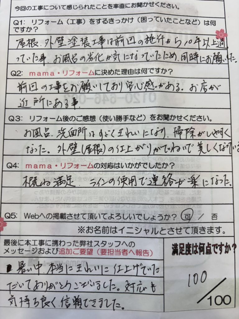 暑い中、本当にきれいに仕上げていただいてありがとうございました。