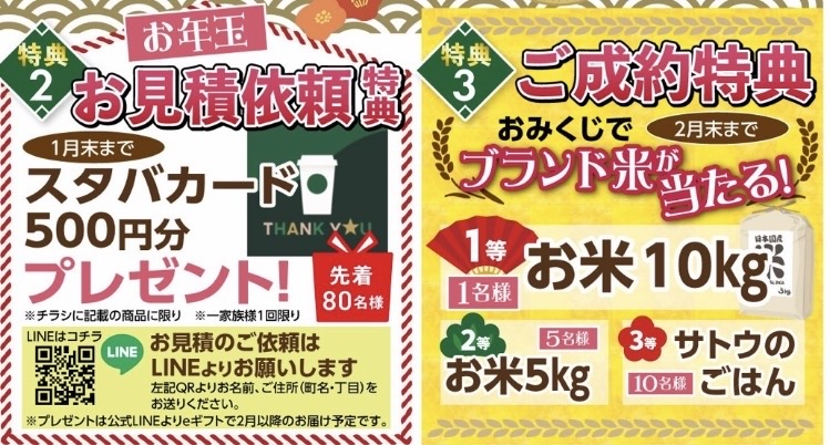 見積のご依頼でプレゼント+さらに!ご成約でブランド米が当たるかも!?