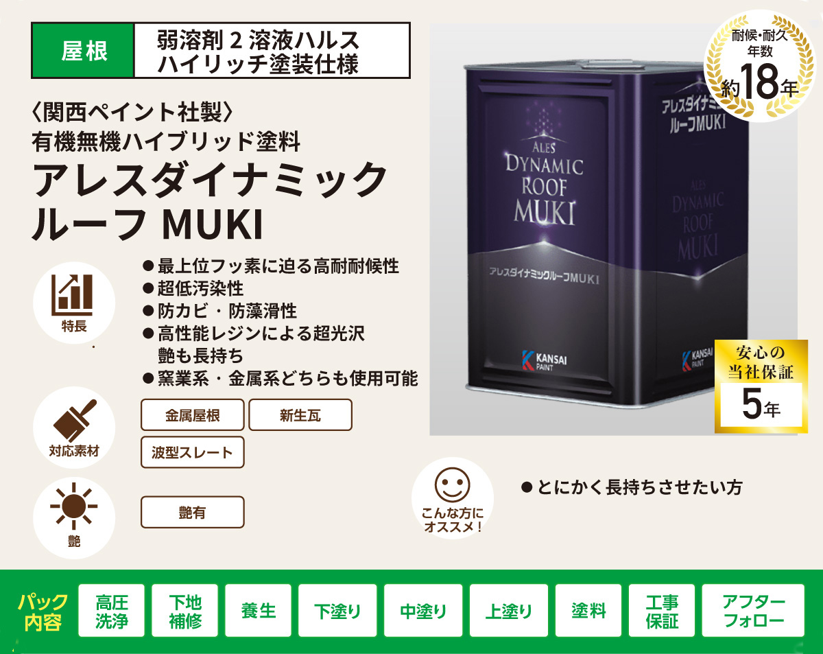 ダイナミックルーフMUKI:耐久性を重視した無機ハイブリッド塗料