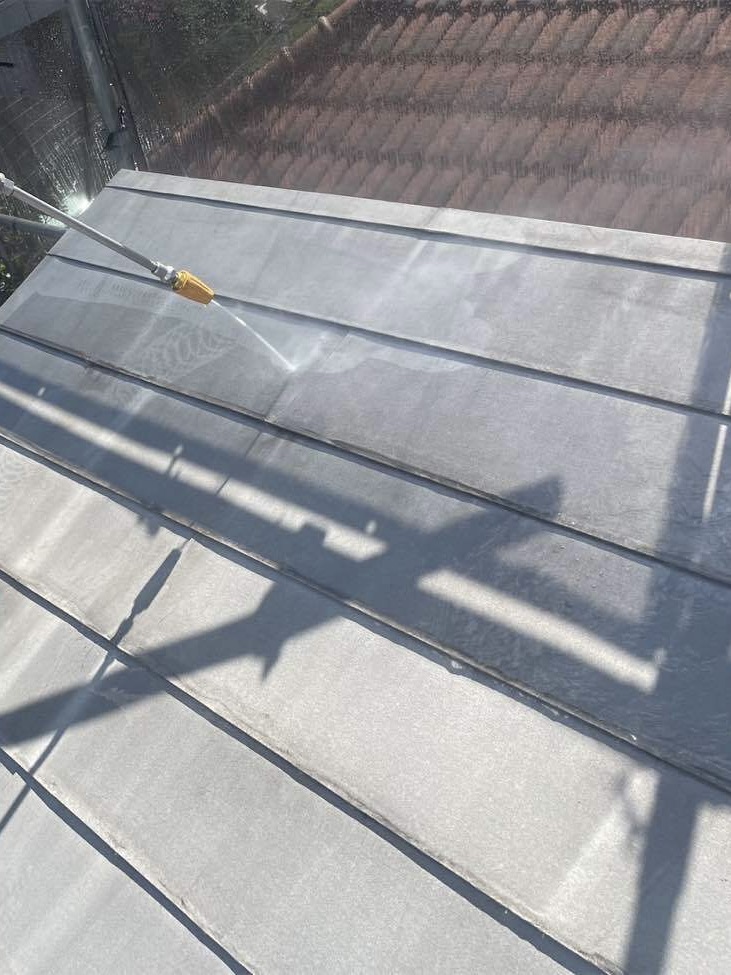 屋根 高圧洗浄中