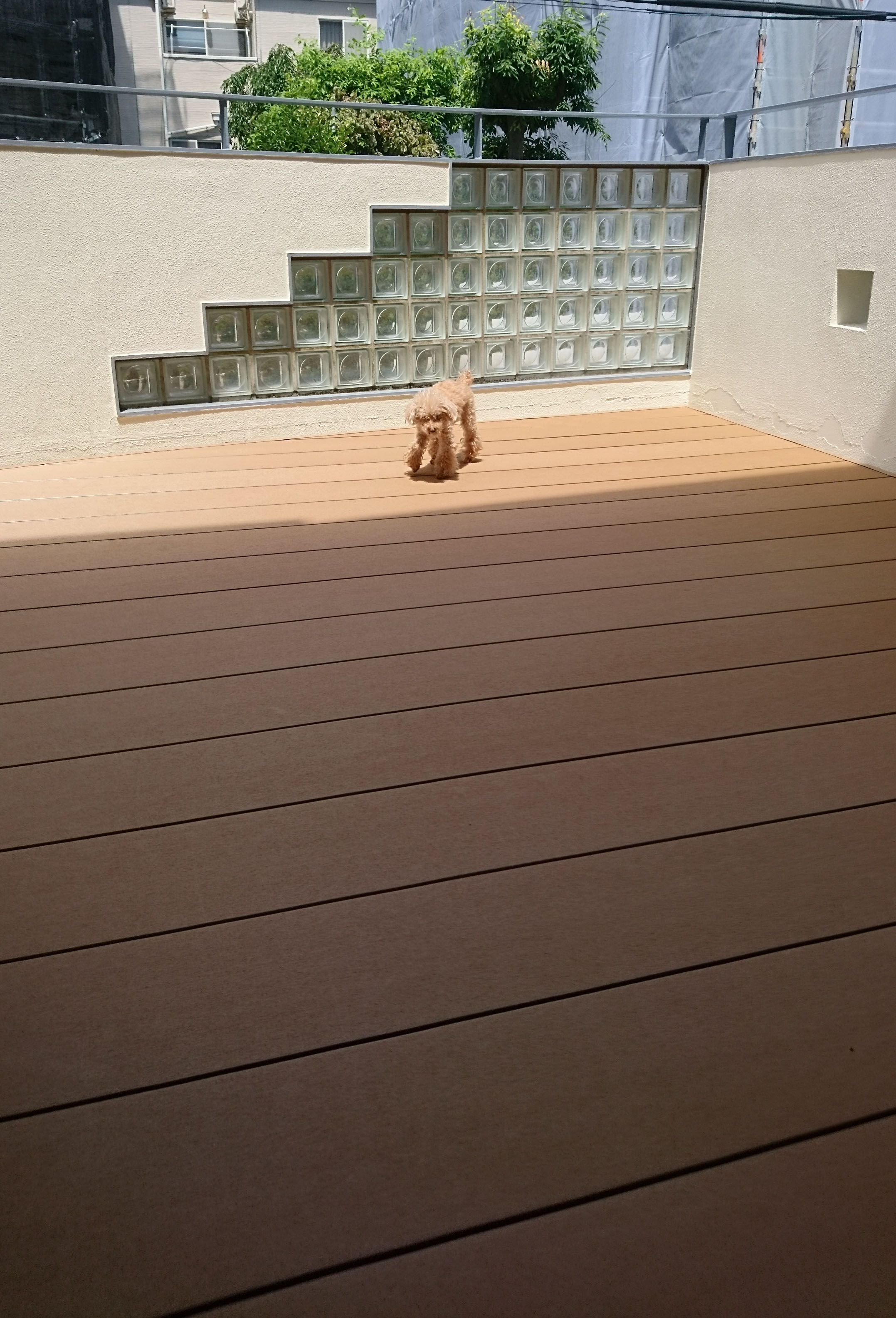老朽化したベランダ。 床の張替でよみがえった広いプレイスペースに