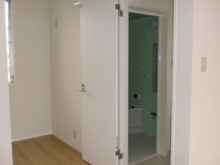 センスよく仕上がりました。トイレの場所を変えることで洗濯機置き場や脱衣所のスペースもできましたし…以前に比べてずいぶんと使い勝手もよくなったので、あとは借りる人を待つばかりです。