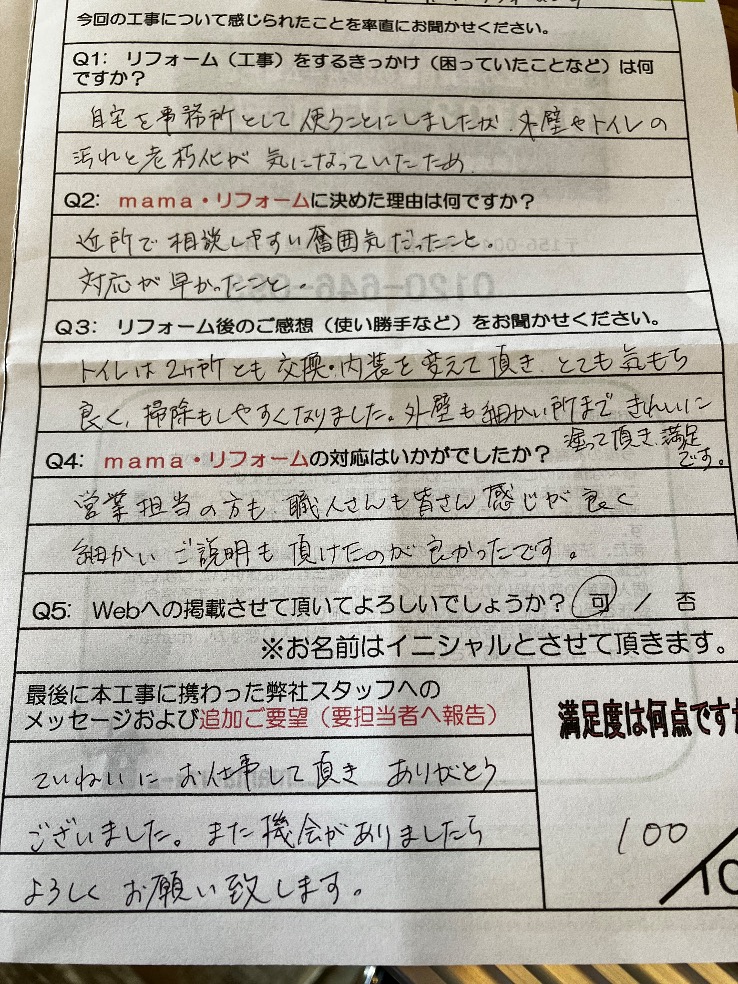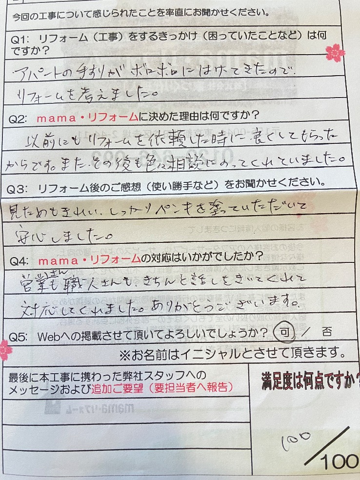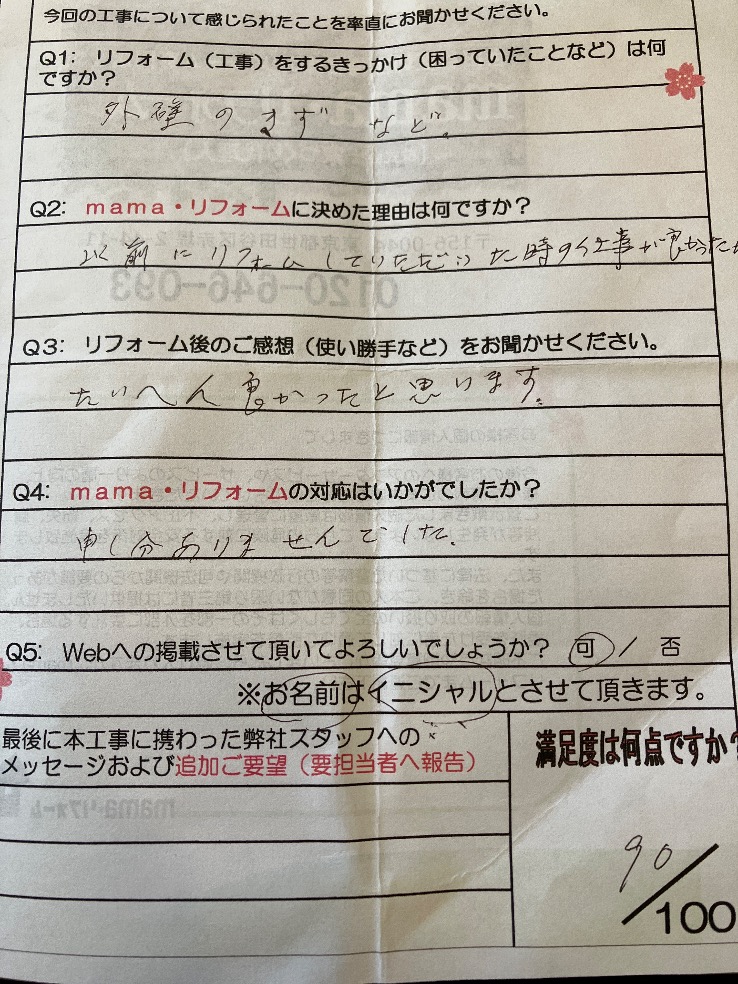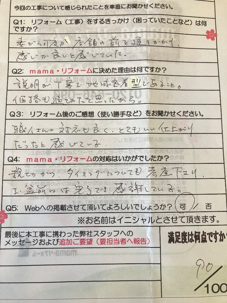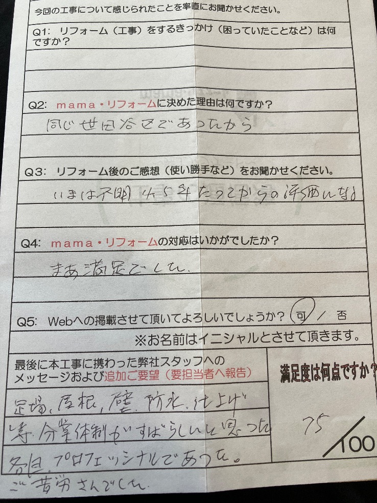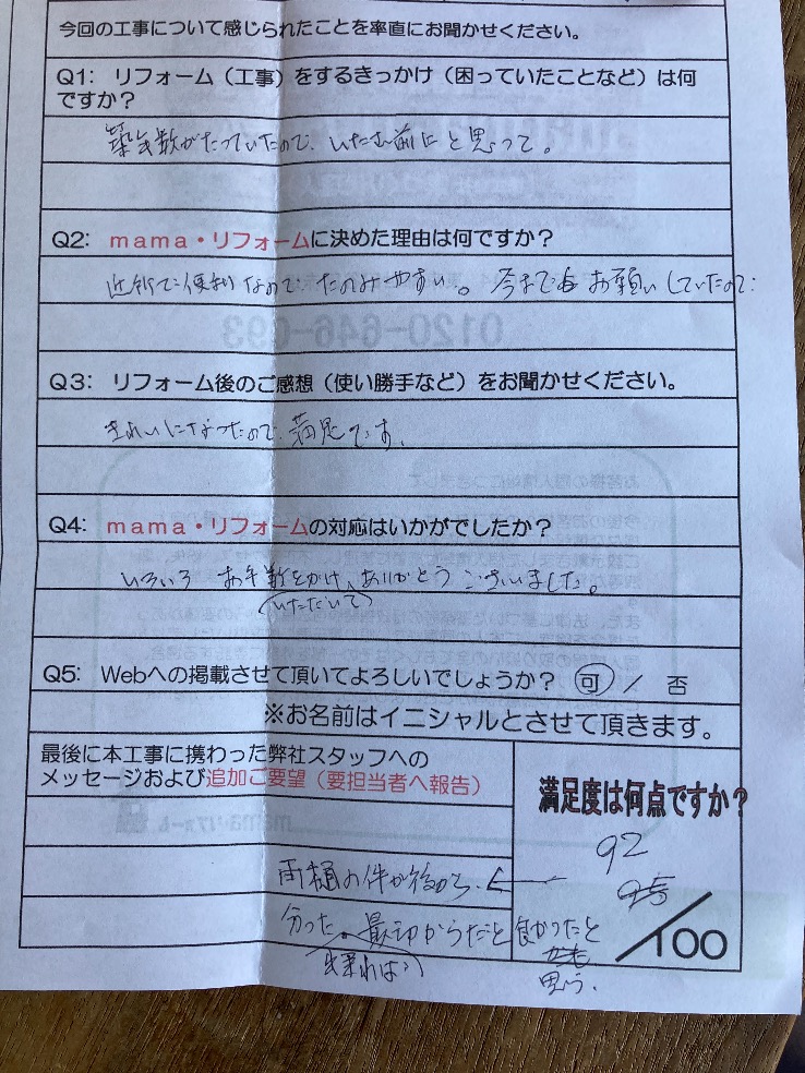 説明の段階から誠実さが伝わってきて安心してお任せできました!